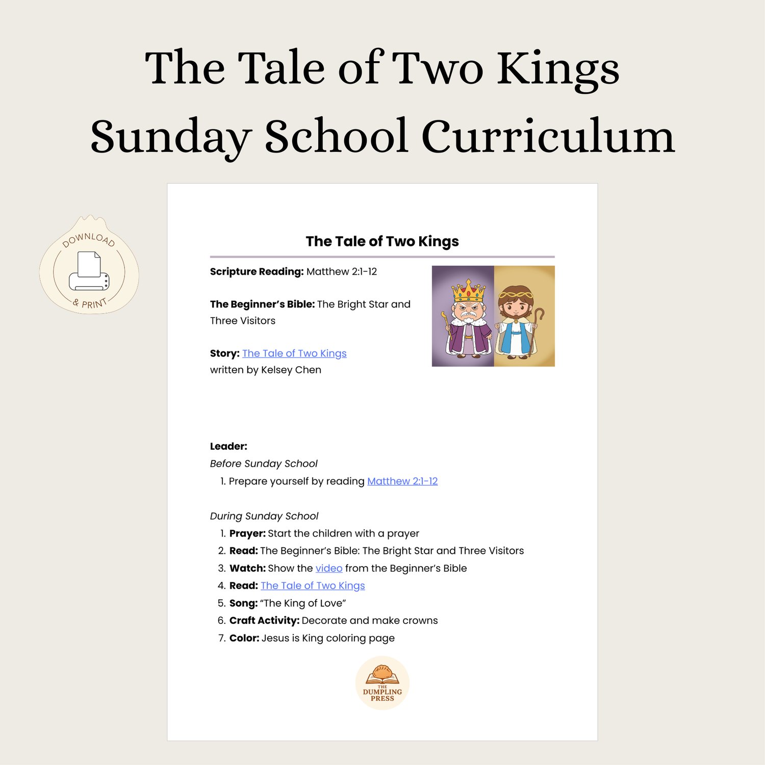 Transform your classroom into a journey of discovery with The Tale of Two Kings Sunday School Curriculum. This comprehensive, "download and print" digital resource is expertly designed to help early childhood educators and parents share the story of the Magi and the true King with clarity and joy.
