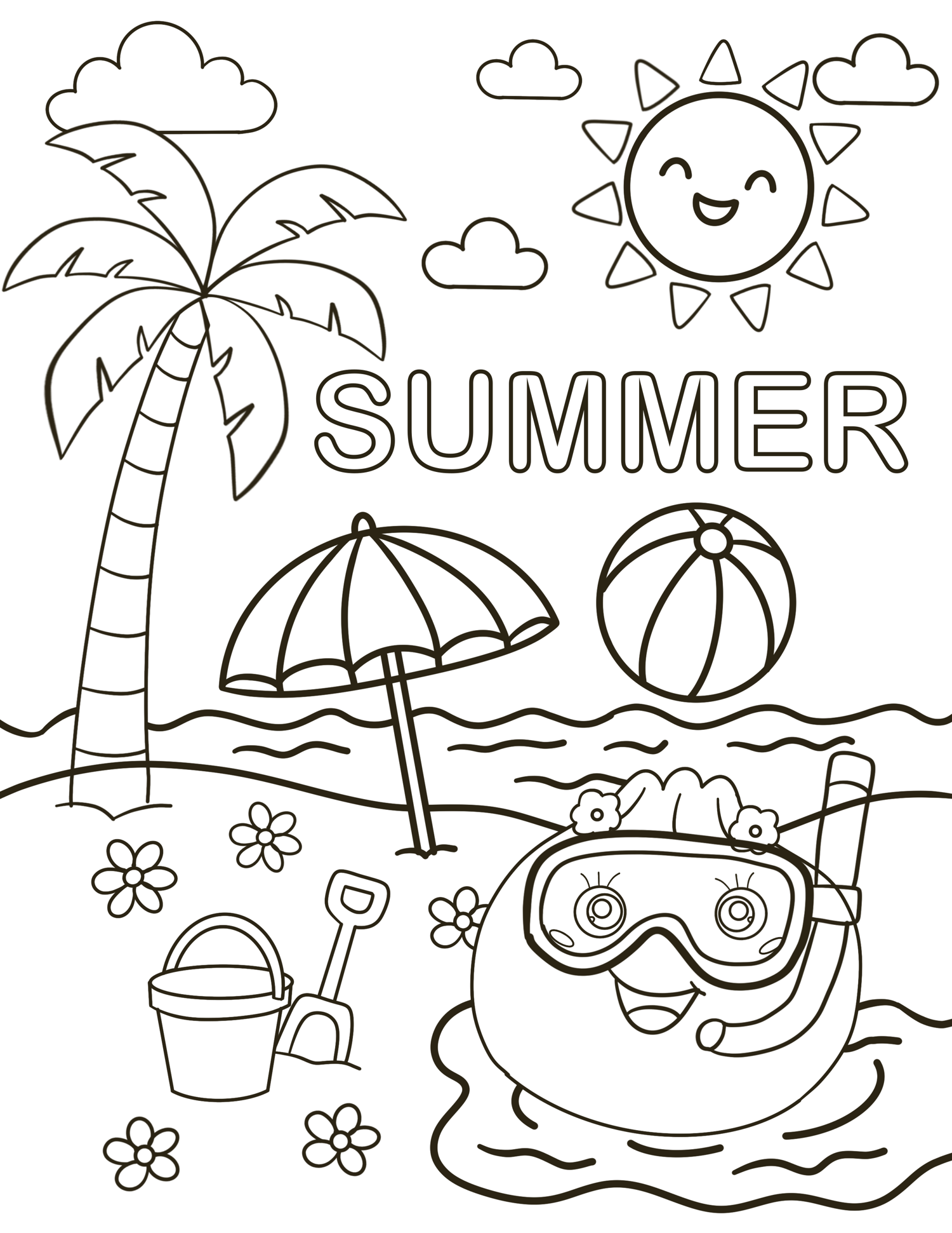 Summer is here coloring pages for kids! This coloring page features Dumpling Naomi ready for the beach!