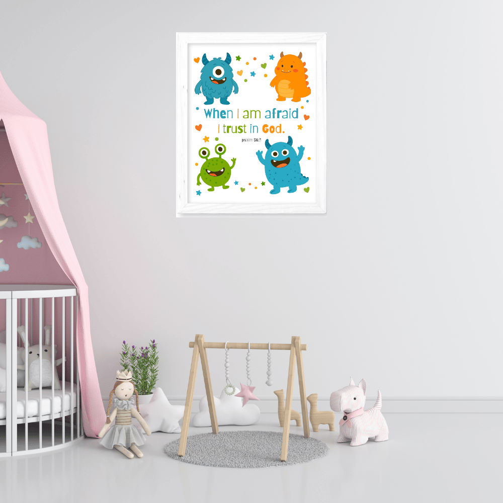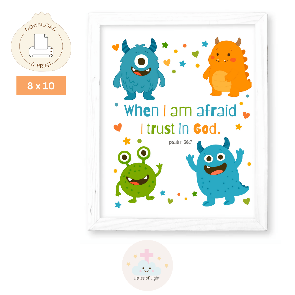 When I Am Afraid Psalm 56:3 Monster-Themed Scripture Wall Art (8x10 Digital Print)